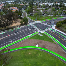 The Adams Avenue and Pinecreek Drive Intersection Multimodal Improvements project implemented innovative pedestrian and bicycle safety improvements by reallocating and repurposing high-speed motorist serving free-right turn lanes (slip lanes) to low stress bicycle and pedestrian facilities, reconstructing sidewalk, building new sidewalk, and adding new and enhanced pedestrian crossings.