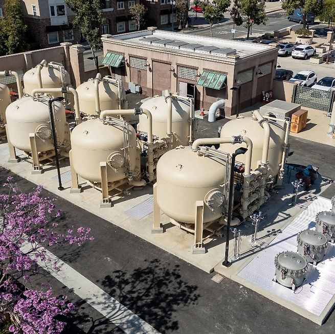 The Main Street PFAS Treatment Plant is a 6,400-GPM ion-exchange media plant constructed by OCWD that removes PFAS from groundwater produced by wells that supply 60% of the City of Tustin’s drinking water. Design was provided by Jacobs Engineering and construction management by Butier Engineering. Xylem provided the treatment system and IX media.